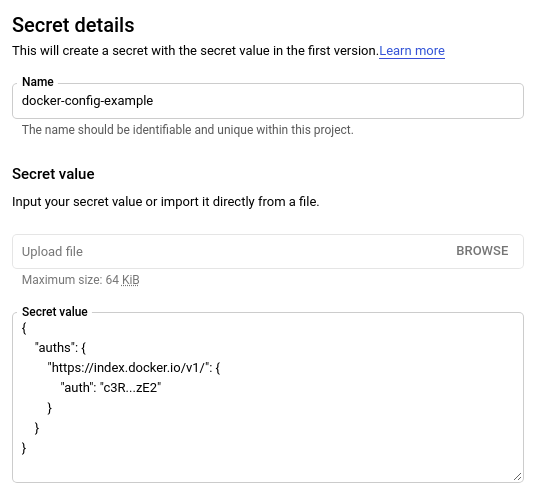Let's call this secret docker-config-example on Google Cloud.