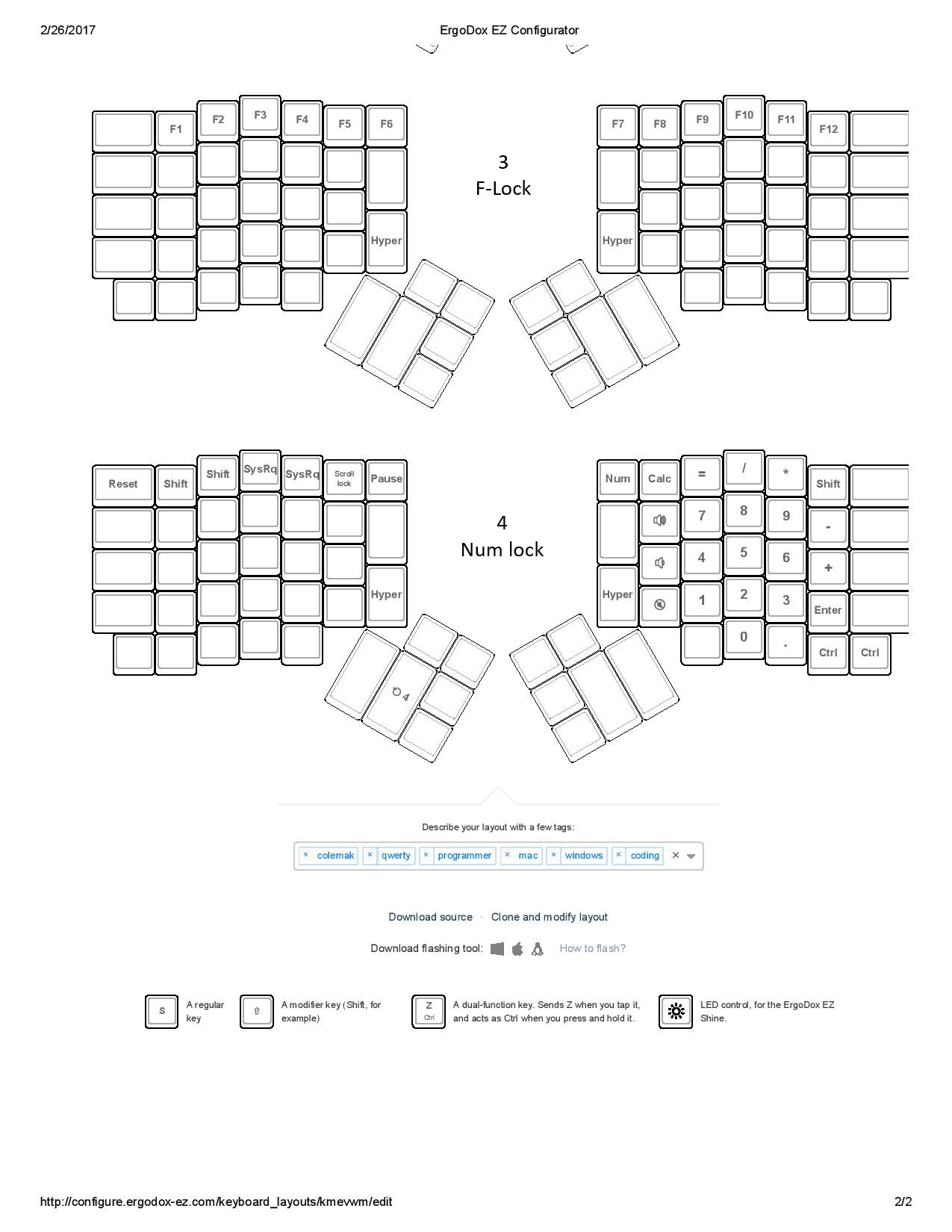 I came to this layout after several iterations. It is not the ultimate best ergonomic layout but it is the best if you switch back and forth between ergodox and laptops.