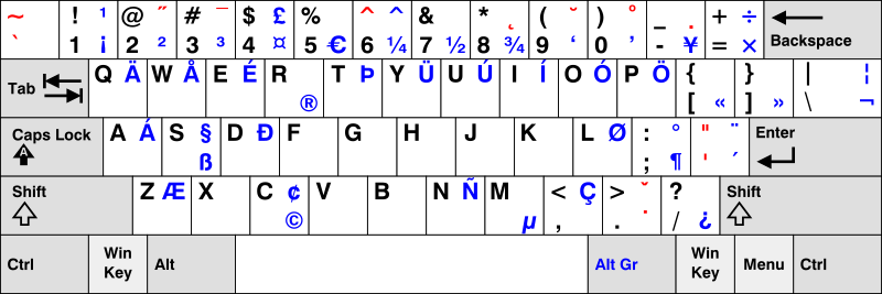 The illustration below shows the "US International" layout available in the Language settings of Windows, Linux and Mac OS.
